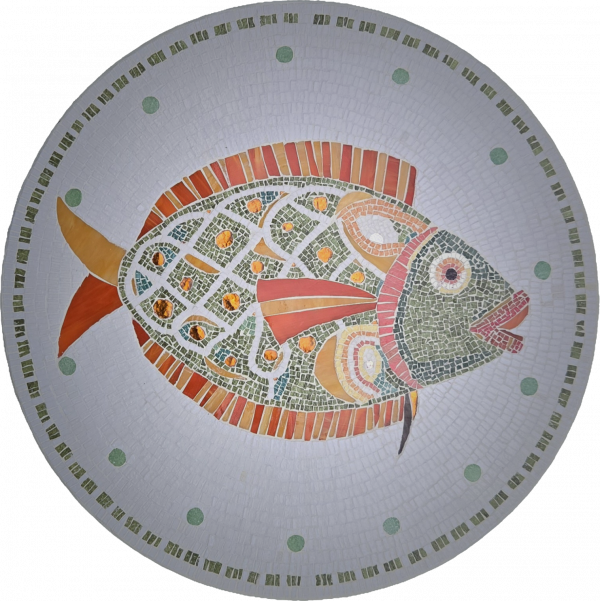 Cette table en mosaïque, intitulée Écailles de Lumière, capture la fluidité et l’éclat du monde marin à travers une composition vibrante et minutieuse. Réalisée avec des émaux de Briare et du verre, elle joue avec les reflets et les textures pour donner vie à un poisson stylisé, où chaque tesselle semble capter et diffuser la lumière.
