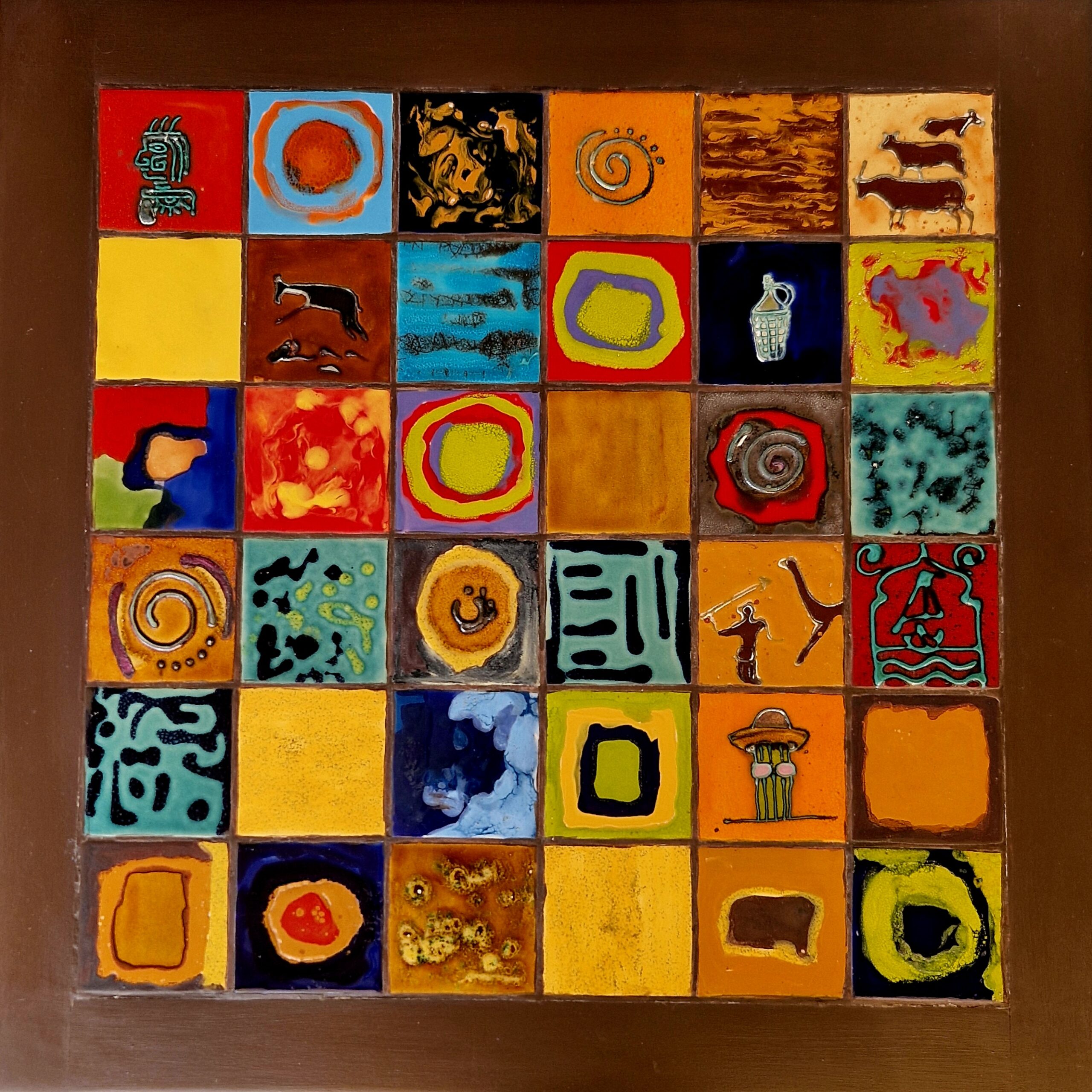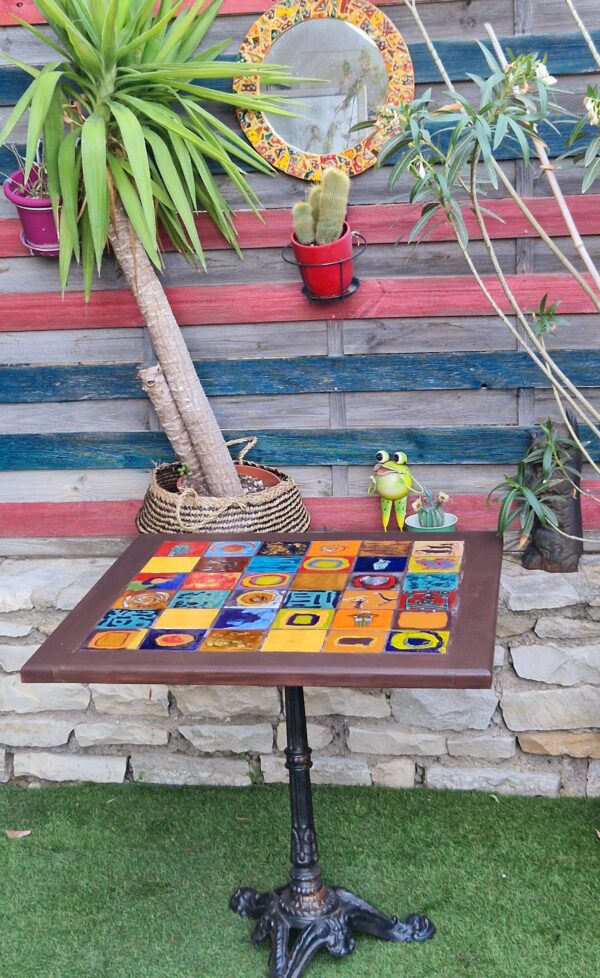 Ce plateau en hêtre décoré avec de la céramique émaillée, offre une explosion de couleurs et de formes qui captivent l’œil dès le premier regard.