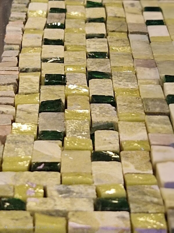 Le contraste entre le vert profond et le parme doux crée une harmonie visuelle captivante, ajoutant une profondeur et une richesse supplémentaires à l’œuvre.